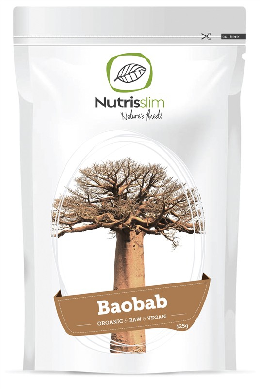 Baobab je strom rostoucí v afrických savanách. Jeho plody patřící mezi ovoce jsou velice ceněné už po staletí díky vysokému obsahu vitamínu C, kterého mají dokonce víc než pomeranče. Mimo to v nich najdeme i velkou zásobu železa - více než v červeném mase. Obsahují i minerály jako vápník, draslík, hořčík a zinek, a vitamíny B1 a B6. Výživový profil jej tedy naprosto zaslouženě řadí mezi ty nejlepší ze superpotravin. Lze jej doporučit všem orientovaným na posílení imunitního systému a celkovou revitalizaci organismu.