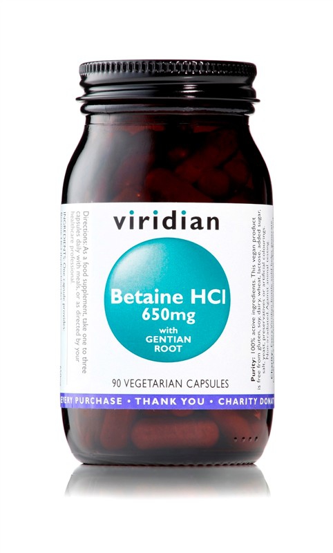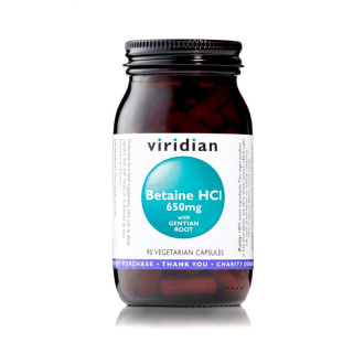 Složení v 1 vegetariánské kapsli: Betain HCl 650 mg, prášek z kořene hořce (Gentiana lutea) 50 mg, vegetariánská kapsle (hydroxypropylmethylcelulóza).