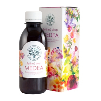 Bylinný sirup Medea je vyrobený z vodného extraktu směsi 9 bylin, která odpovídá bylinné směsi Nervan od lidové bylinkářky Boženy Kamenické. V byliném sirupu Medea najdete extrakt z kozlíku, meduňky, svízele vonné, sléze, řebříčku, bezu černého, skořice, anýzu, plicníku a truskavce.