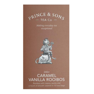 Nejvyšší dostupná kvalita čaje rooibos Cederberg s trochou pravé vanilky a nádechem sametového karamelu. To vše v kombinaci, kterou ocení každý gurmán. Jedno balení obsahuje 15 čajových sáčků fuso.