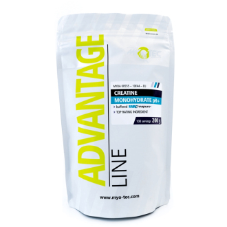 Creatine Monohydrate pH+ značky MyoTec je dvojnásobně pufrovaný Creapure® kreatin monohydrát s garantovanou čistotou a kvalitou vyráběný pod ochrannou známkou Crea-trona®. Optimalizované pH produktu (pH 9,7 – 10,3) je garancí maximální využitelnosti = netřeba užívat takové množství, stačí 2x 2g denně.