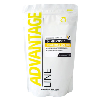 Čistá dextróza (100% D-glukóza) ve volné formě. Jde o monosacharid, který se přirozeně vyskytuje v mnoha rostlinných zdrojích, je vyrobený enzymatickou hydrolýzou škrobu.