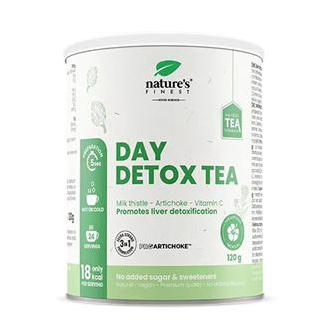 Night Detox Tea obsahuje extrakty z bílého čaje, ostropestřce a artyčoku, které mají lepší výsledky než pití samotného čaje. Extrakt ProArtichokeTM, ostropestřec i bílý čaj pomáhají snížit oxidativní stres a mají vlastnosti související s činností jater i zažívacího traktu, jejich účinek pak posiluje vitamín C. Stačí zalít vodou a rychle tak máte připravený teplý nebo ledový čaj. Day Detox Tea neobsahuje umělá sladidla.