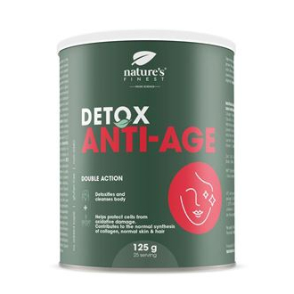 Tvorba kolagenu v těle postupně klesá, pokud chceme pečovat o vzhled, vyplatí se jej doplňovat. Kolagen má vliv na vzhled a stav kůže, pokožky, vlasů i nehtů. Detox Anti-Age obsahuje kolagen, biotin, vitamín C a zároveň chlorellu, ostropestřec a artyčok, které snižují zátěž organismu včetně pokožky oxidativním stresem.