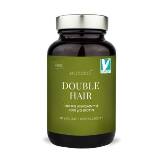 Nordbo Double Hair je velmi precizně zacílený doplněk stravy kombinují patentovaný extrakt AnaGainTM z BIO hrachových klíčků s vysokou dávkou biotinu. Vlastnosti těchto dvou složek jsou synergní a souvisejí se stimulací vlasových folikul, redukcí ztráty vlasů a jejich kondicí. AnaGainTM je speciální extrakt z hrachový klíčků, které jsou bohaté na složky aktivující buňky ve vlasových folikulech. Obnovují v nich mikrocirkulaci živin. Vlastnosti biotinu souvisejí s produkcí keratinu, který zvyšuje kvalitu vlasů. AnaGainTM byl testován v klinické studii s jedinci trpícími středně závažným vypadáváním. Po dvou měsících se snížila ztráta vlasů o 37 % a došlo k viditelnému zpevnění vlasových vláken.