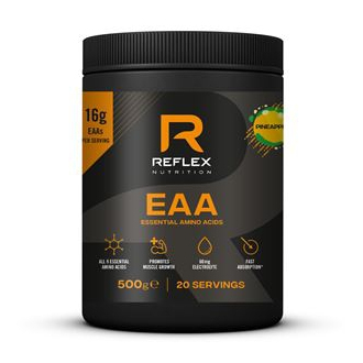 Pozn: produkt obsahuje v jedné dávce 16g volných forem EAA (esenciální aminokyseliny), které v přepočtu na obsah dusíku (N) představují ekvivalent 13g standardní bílkoviny. Rozdíl v obsahu dusíku oproti standardní bílkovině s obsahem peptidicky vázaných aminokyselin, je dán chybějící peptidickou vazbou u volných forem aminokyselin.