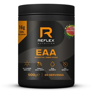 EAA Reflex Nutrition nabízejí 16 g EAA na jednu 25 g dávku! Jde tak o perfektní zdroj živin pro namáhané svaly, které po tréninku pro svůj růst a regeneraci potřebují esenciální aminokyseliny jako stavební látky. Komplex obohacuje hořčík a draslík (elektrolyty), které tělo během výkonu ztrácí a je tak třeba ja efektivně doplňovat. Vlastnosti hořčíku a draslíku souvisí s činností svalů. Podobné je to také s obsaženým vitamínem B6, jeho vlastnosti souvisí s energetickým metabolismem. Obsažený Bioperin® pomáhá ostatním složkat se vstřebáním.
