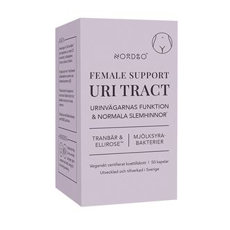 Female Support Uri Tract je specificky zformulovaný doplněk pro podporu ženského močového ústrojí. Obsahuje sedm účinných bioaktivních složek zaměřených na podporu obranného štítu v této oblasti. Extrakt z klikvy velkoplodé obsahuje proanthokyanidiny, typ speciálních antioxidantů ze skupiny flavonoidů. Brusnice zároveň obsahují látku, která zabraňuje nežádoucím částicím přilnout ke stěnám. Stejné vlastnosti má D-manóza. Extrakt z ibišku vyráběný pod ochrannou známkou ElliroseTM obsahuje složky podporující přirozenou obranu těla a zvyšuje odolnost organismu. Doplněk dále obsahuje vitamín C v pufrované formě L-askorbátu vápenatého, která je dobře vstřebatelná a šetrná k zažívání (nezvyšuje aciditu). Riboflavin a biotin přispívají k udržení normálního stavu sliznic a prospěšné kultury Lactiplantibacillus plantarum obnovují přirozený mikrobiom a zároveň podporují obranný štít.