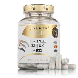 Zinek je jedním z významných minerálních látek důležitých pro správné fungování celého organismu. Je stopovým prvkem, tělo ho tedy potřebuje jen v menším množství, není ale o nic méně důležitější než jiné minerály. Zinek je zásadní pro tvorbu několika set enzymů a bílkovin. Je součástí metabolických procesů jako je například syntéza makroživin (cukrů, tuků a bílkovin), mastných kyselin, zásad a také vitaminu A. Zinek potřebují naše kosti, nehty, vlasy, pokožka i oči. Nepostradatelný je pro zdraví reprodukční soustavy a kognitivní funkce mozku. Golden Nature Exclusive Triple zinek kombinuje tři efektivní formy zinku – zinek bisglycinát, citrát a glukonát, které jsou navíc obohaceny o měď.