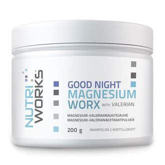Good Night Magnesium představuje komplexní dopněk pro podporu spánku. Při náročném období (stresu, velké zátěži nebo i při náročném fyzickém tréninku) je tělo (nervová soustava) stimulovaná natolik, že může být obtížné "vypnout". S tím mohou pomoci přírodní látky. Všechny obsažené složky, hořčík, kozlík, theanin, tryptofan i vitamín B6 mají vlastnosti související s nervovou soustavou, pocitem klidu a relaxace, kvalitou spánku a spánkovým režimem.