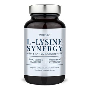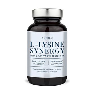 L-Lysine Synergy je synergický komplex obsahující esenciální aminokyselinu L-lysin v kombinaci se zinkem, selenem, černým bezem, vitamínem B6 a AstraGinem®. L-lysin podporuje obranyschopnost, regeneraci a mnohé další oblasti. Zinek přispívá k udržení normálního stavu pokožky, vlasů a nehtů a k normální funkci imunitního systému. Selen přispívá k ochraně buněk, DNA, bílkovin a lipidů před oxidačním stresem. Černý bez podporuje normální funkci imunitního systému. Vitamin B6 přispívá k normálnímu energetickému metabolismu a ke snížení míry únavy a vyčerpání. AstraGin®, patentovaný rostlinný extrakt z astragalu a ženšenu, má ve studiích prokázaný účinek na vstřebávání aminokyselin.