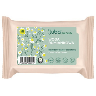 Vlhčený toaletní papír Luba Eco Family pro celou rodinu je dokonalým způsobem, jak udržet vše čisté a svěží po každém použití toalety. Jedinečné složení s heřmánkem poskytuje pocit pohodlného čištění a péče. Fyziologické pH, dermatologicky testováno. Papírový materiál 100% přírodního původu, splachovatelný do WC. Používejte podle určení.