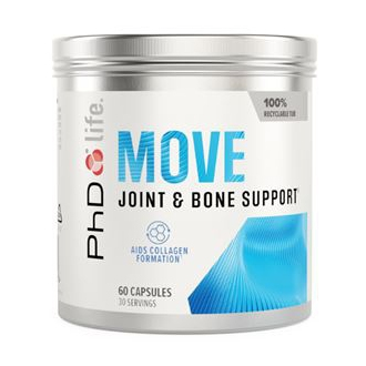 Move v kapslích je pokročilý šesti složkový doplněk stravy zaměřený na pohybový aparát - klouby, vazy a chrupavky. Je určený pro podporu každodenních aktivit i náročného fyzického výkonu a sportu. Move obsahuje hlavní stavební látku pro kloubní aparát - nedenaturovaný kuřecí kolagen typu II a dále hořčík, vitamín D3, C a stopové prvky měď a mangan, které se v těle podílejí na přirozené tvorbě kolagenu, jsou obsažené v chrupavce a v pojivových tkáních.