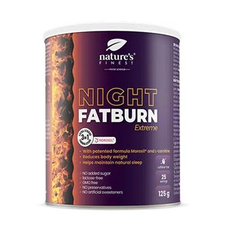 Night Fatburn Extreme podporuje redukci nadbytečného tuku během spánku. Obsahuje patentovanou směs Morosil® - extrakt ze šťávy červeného pomeranče Citrus sinensis L. Osbeck a přidaný L-karnitin. Tyto dvě látky pracují i během noci a působí proti hromadění tuku. Přidaný kozlík zlepšuje kvalitu spánku, Night Fatburn Extreme tak působí aniž by narušoval spánkový rytmus.