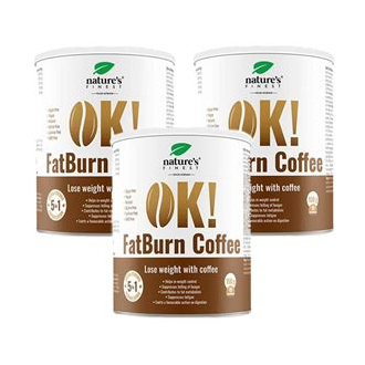OK! Fat Burn Coffee je rýžový nápoj v prášku s přidaným kávovým extraktem, extraktem z guarany, L-karnitinem a extraktem z černého bezu. Je určený pro každodenní užívání během dne. Obsažené účinné látky mají podobné vlastnosti zaměřené na oblast kontroly hmotnosti, potlačení chuti na jídlo a dodání energie.