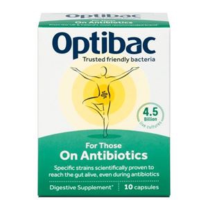Optibac On Antibiotics je doplněk stravy s obsahem tří speciálních druhů probiotik určených po podporu během léčby antibiotiky. Tyto speciálně vybrané kmeny byly prověřený klinickými zkouškami, aby obstály při současném užívání s antibiotiky a prošly bez úhony kyselým prostředí žaludku. On Antibiotics obsahují dva druhy kultur z kmenů Lactobacillus a jeden druh kmene Bifidobacterium. Optibac On Antibiotics je určený pro obnovu mikrobiumu poškozeného antibiotiky. Spolu s obnovou rovnováhy prospěšných kultur v zažívacím traktu se obnovuje i obranný štít a celková fyzická i psychická kondice.