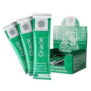 Oracle je vícesložková funkční potravina, speciálně navržená pro podporu mozkových funkcí, vnitřního klidu a rovnováhy. Zvyšuje koncentraci, osvěžuje mysl, zlepšuje spánek, peristaltiku a střevní rovnováhu (vyvažuje mikrobiom), posiluje imunitu a alkalizuje (metabolický detox).