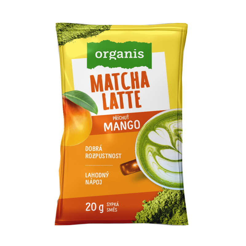 Organis Matcha Latte mango 20 g je sypká směs pro přípravu čajového nápoje s jemnou mléčnou chutí a exotickou mangovou příchutí. Základem je kvalitní bio matcha ze zeleného čaje pocházejícího z Japonska, doplněná sušeným odtučněným mlékem, třtinovým cukrem a mrazem sušeným mangem.