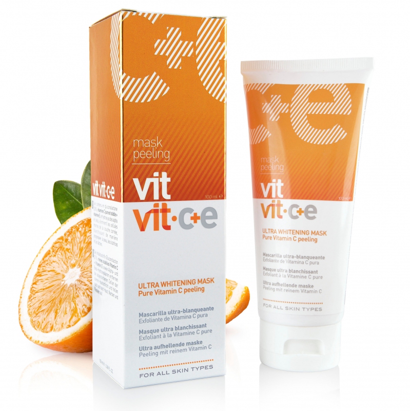 Maska Vit Vit C + E je dermatologicky testována a schválena, nikdy ale nebyla testována na zvířatech. Její složení je k pleti šetrné, neobsahuje žádné minerální oleje ani parabeny, nedráždí pleť a neucpává pleťové póry. Pleťová peelingová maska pleť šetrně bělí, odstraňuje pigmentové skvrny, které na pleti vznikly neopatrným sluněním nebo přirozeným stárnutím pleti. Pleť bude mít již po několika aplikacích světlejší a jednotnější tón, který bude působit mladistvým dojmem. Peelingová maska Vit Vit C + E obsahuje účinné látky, které pleť jedinečným způsobem rozzáří a dodají vašemu obličeji svěží, odpočatý a přirozeně krásný vzhled. Maska se nedoporučuje používat při opalování.