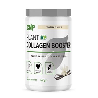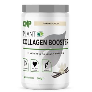 Plant Collagen Booster = podpora přirozené tvorby kolagenu v těle pomocí výhradně rostlinných složek. Plant Collagen Booster obsahuje proteinovou směs (s (mikronizovaný hrachový protein, protein z hnědé rýže), L-Glycin, lysin, methyl sulfonyl metan (MSM), prolin, acerola, spirulina a kapusta v prášku.