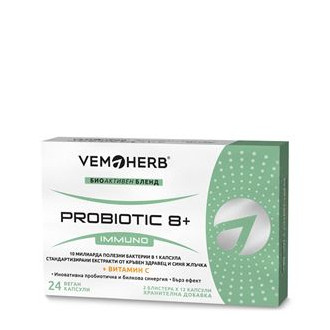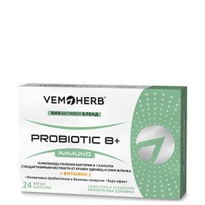 Probiotic 8+ Immuno je pokročilý komplex bioaktivních přírodních složek zaměřený na zažívací trakt, imunitu, regeneraci, vitalitu a osu zažívací trakt - mozek. Obsahuje šest probiotických kmenů (Lactobacillus bulgaricus, Streptococcus thermophilus, Bifidibacterium longum, Lactobacillus acidophilus, Lactobacillus helveticus, Lactobacillus rhamnosus) podporujících vyrovnaný stav mikrobiomu. Rovnováha probiotických bakterií ve střevě úzce souvisí se stavem imunitního systému, příjmem živin i psychikou (osa střevní trakt - mozek).