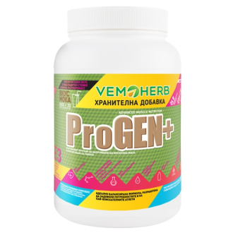ProGEN+ je 100% naturální proteinová formule s obsahem 80% bílkovin, obsahující plnohodnotné spektrum aminokyselin (rostlinné zdroje + aditivum volných forem aminokyselin), aditivum bioaktivních enzymů a speciálních extraktů (95% Beta-Ecdysteron, černý pepř) zaměřených na proteosyntézu, pozitivní dusíkovou bilanci a očistu (při nadměrném příjmu živočišných bílkovin).