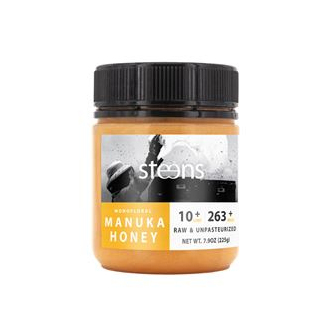 Steens Manuka Honey je raw nepasterizovaný pravý manukový med z Nového Zélandu. Pochází od včel opylujících Balmín metlatý, keř s bílorůžovými květy pocházející původně z Austrálie a Zélandu, kde mu původní domorodé maorské kmeny daly název Manuka. Med z květů Manuky má výjimečný výživový profil - obsahuje celé spektrum enzymů, aminokyselin, antioxidantů, vitamínů, minerálů a dalších látek s velmi zajímavými vlastnostmi. Manukový med je také známý jako chuťově výraznější, bohatší a plnější než jiné medy. Je to dáno velmi vysokou koncentrací účinných látek.