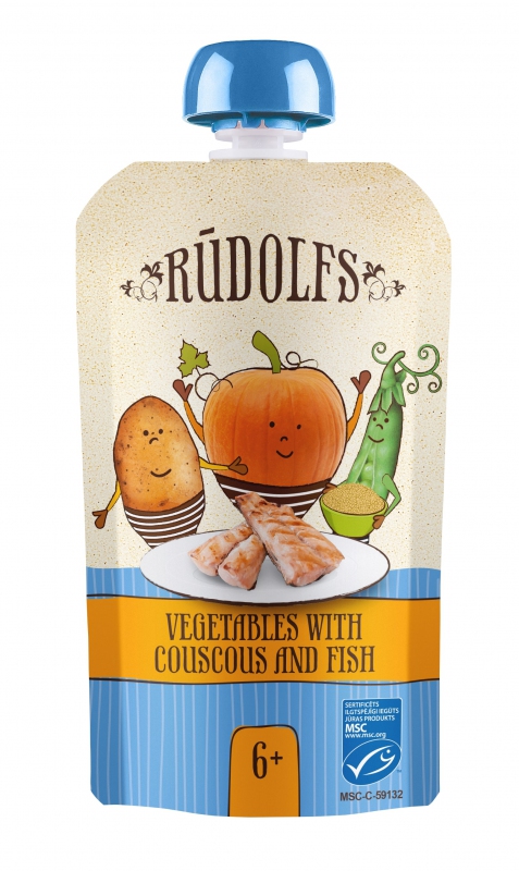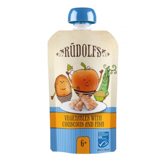 BIO zeleninový příkrm s kuskusem a rybou pro zvláštní výživu kojenců a malých dětí od ukončeného 8. měsíce. Bez přidaných konzervantů a soli.