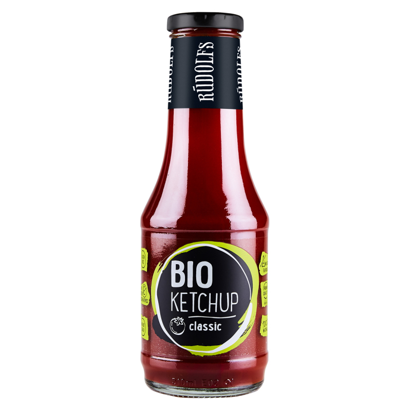 Kečup od značky Rudolfs je oblíbená omáčka z rajčat z organického zemědělství vyzrálých na slunci.