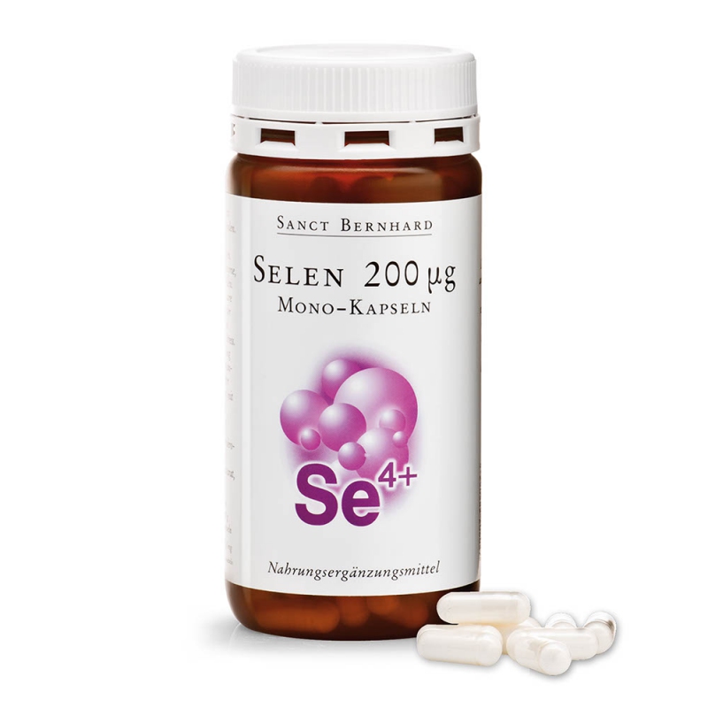 Selen je velmi důležitý stopový prvek pro správné fungování našeho organismu. Je součástí mnoha enzymů, podporuje růst a zdraví vlasů, nehtů, zabezpečuje správnou funkci štítné žlázy a imunitního systému. Navíc snižuje oxidační stres a ochraňuje tak buňky a zpomaluje stárnutí. Vyšší množství selenu potřebujeme v případě, že máme vysokou fyzickou či psychickou zátěž, během těhotenství a kojení. Je nutné hlídat si jeho příjem potravinami, přesto se nemusí naplnit množství, které je potřebné, proto je dobré tělu tento prvek dodávat i potravními doplňky. Každá kapsle os Sanct Bernhard obsahuje 200 µg čistého selenu.