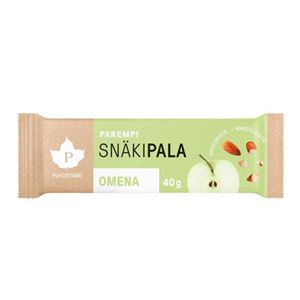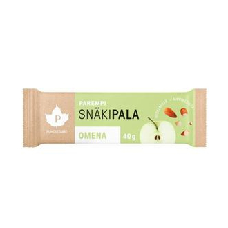 Hledáte tyčinku bez jakýchkoli syntetických aditiv? Dopřejte si vlastní kousek přírody! Tyčinka Puhdistamo Snäkipala je 100% přírodní, vysoce kvalitní tyčinka výhradně z přírodních a rostlinných surovin. Najdete v ní mandle, datlovou pastu, sušená jablka a přírodní aroma, která dodává chuť.