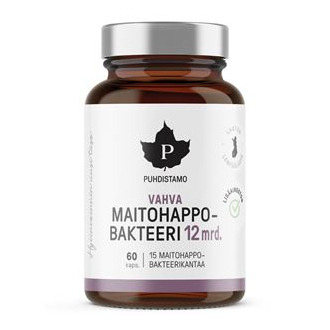 Puhdistamo Strong Lactic Bacteria představuje velmi silný probiotický a prebiotický doplněk s celkem 15 kmeny prospěšných kultur druhů Bifidobacterium, Lactobacillus a Streptococcus.