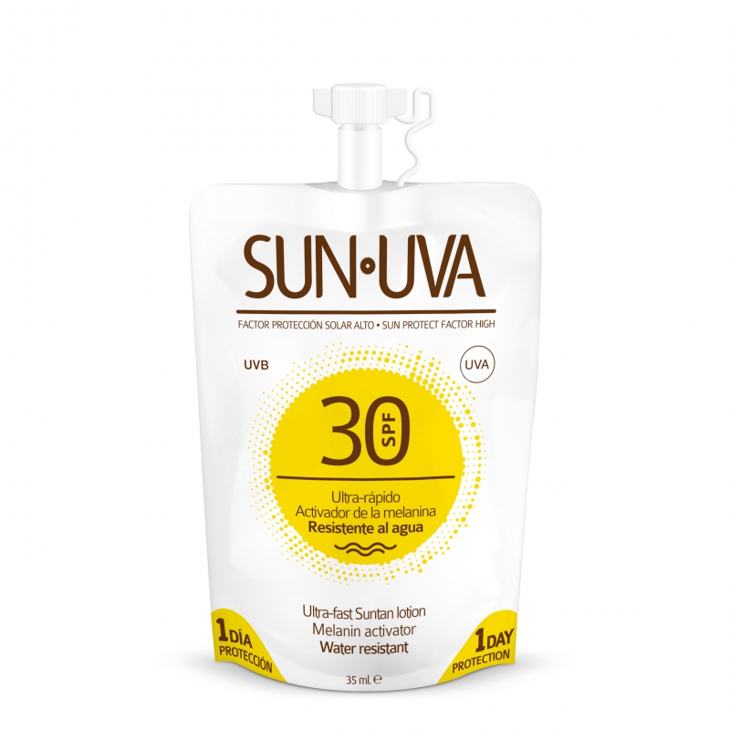 Voděodolný opalovací přípravek je určen k ochraně pokožky před slunečním zářením. Obsahuje vysoký ochranný faktor SPF 30 a urychlovače opalování, které zajistí, že vaše pokožka bude brzy krásně zabarvená do přirozeně zlatavé barvy. Balení přípravku vystačí na jeden celý den intenzivního slunění, je menší, skladnější a je z něj o 45 % méně odpadu, než z klasického balení. Díky tomu je možné pořídit si všechny tři stupně ochrany – SPF 30, 15 i 6 a odpadne tak drahé a zbytečné nakupování velkých tub, které nestihnete vypotřebovat.