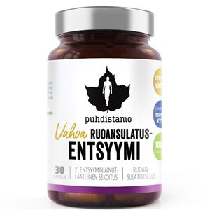 Puhdistamo Digestive Enzymes obsahuje komplex celkem 12 trávících enzymů v extra zvýšených dávkách. Jde tak ve své kategorii o naprosto mimořádně silný doplněk, který lze doporučit všem orienatovaným na stav zažívacího traktu, regeneraci a také podporu tvorby svalové hmoty.