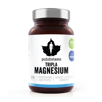 Tripple Magnesium obsahuje tři chelátově vázané formy hořčíku - malát hořečnatý, bisglycinát hořečnatý a taurát hořečnatý. Hořčík je v těchto formách vázaný s druhou látkou (kyselinou jablečnou, L-glycinem nebo L-taurinem stejným druhem vazby, která se přirozeně vyskytuje v přírodě = chelátová (organická vazba). Díky tomu je pro tělo velmi dobře využitelný, řádově o desítky procent více než u anorganických vazeb (oxidy,…).