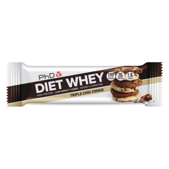 Diet Whey Bar nyní obsahuje lahodnou vrstvu karamelu procházející středem stejně jako proteinové křupinky, což jí dodává výtečnou chuť a křupavou konzistenci. Nová verze má stále méně než 200 kalorií a méně než 2g cukru.