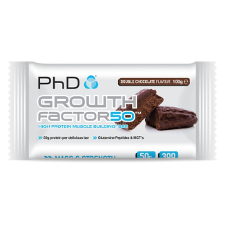 Vysokoproteinová tyčinka, obsahující 50 g kvalitních bílkovin, 6 g kvalitních MCT tuků, aditivum glutaminových peptidů a speciální vysokomolekulární Waxy Vol sacharidy z ječmene.
