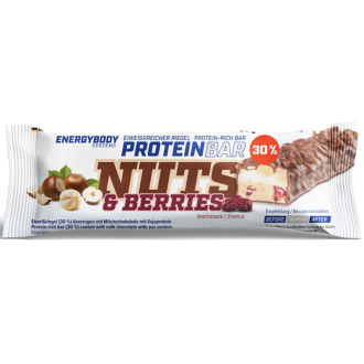 Nejnovější proteinová tyčinka od EnergyBody s mléčnou čokoládou, oříšky a brusinkami. Obsahuje 30% proteinu a 35g sacharidů na 100g. Je vhodná pro doplnění bílkovin po tréninku nebo jako výživná svačinka kdykoli během dne.