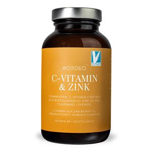 Nordbo Vitamin C & Zinc obsahuje dvě složky důležité pro efektivní obranný štít - vitamín C a zinek. Vitamín C je v doplňku obsažený ve velmi vysoké dávce - 1000 mg na 1 kapsli ( = 1250 % RHP). Navíc je v kysele neutrální formě askorbátu vápenatého, je tedy šetrný k žaludku. Zatímco zinek je v chelátované formě pikolinátu zinečnatého, kdy je zinek vázaný s kyselinou pikolinovou (přirozený metabolit tryptofanu), a je tedy velmi dobře dostupný pro tělo.