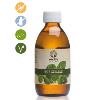 Složení: 100% bylinná voda (hydrolát) získaná destilací oregánových lístků (Origanum minutiflorum) při výrobě oregánového esenciálního oleje. Hydrolát obsahuje 1 % oregánové esence.