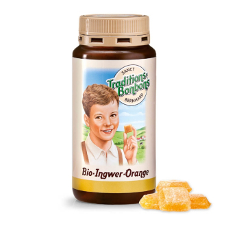 Bonbony Sanct Bernhard jsou vyrobeny z těch nejkvalitnějších složek. Jsou zcela přírodní. Mísí se v nich zajímavé chuti sladkého šťavnatého pomeranče a štiplavého kořeněného zázvoru.